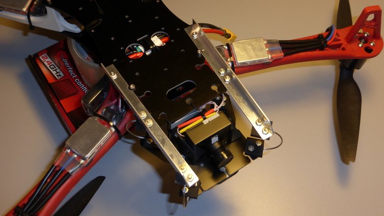 This design is quite suitable for any copter and is not tied to any particular frame. I have the MF450 Locust frame with plastic arms (DJI clones) and the central fiberglass plates. Arms do not have sufficient stiffness, so it will definately cause strong vibrations. This will be an excellent test for our anti-jello platform! And the results are perfect! No jello absolutely!