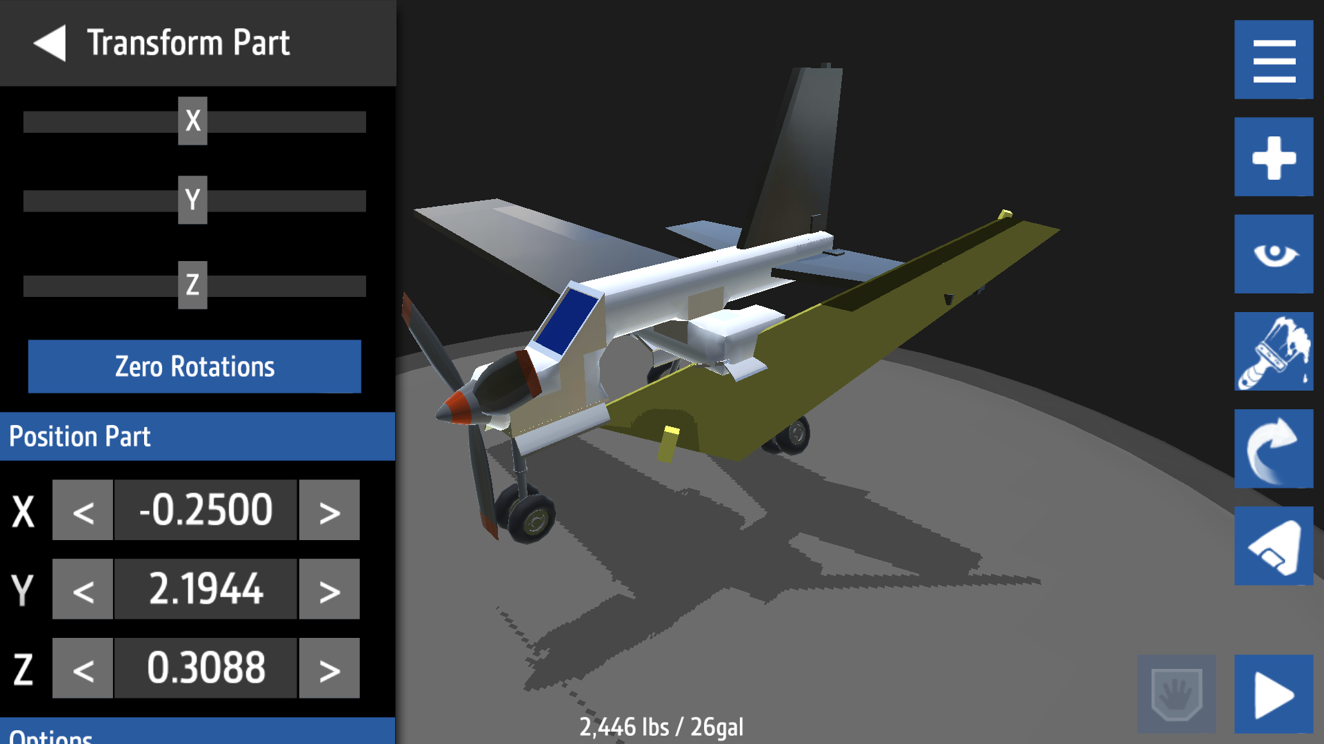 Nothing is perfect, and this game has also some negative aspects: for example, the Wing shape editor could be a bit better, especially with small wings, its Just too rough. Then, it is possible to have a RC plane point of view by placing a camera on the ground next to the airplane, but it doesn't zoom, so you cant see it that well even if its just in the other side of the airport. A zoom function could have made it even cooler. And If you download planes with 300+ parts, the game will start lagging in slower phones. You also don't have that much options in the phone than you have in the PC version: you cant make flaps, put slow motion on and have a little fewer parts like no tank tracks. But when you download planes with these parts, you can use the parts, but only in that plane. And the drag ist only calculated for the front part of the plane, like the nose, it doesn't matter If your back end is smooth or not. And lift is only calculated for the wings, so no lifting body.